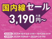 格安航空会社LCCのピーチが、「国内線セール」を2025年10月16日から10月20日まで開催します...